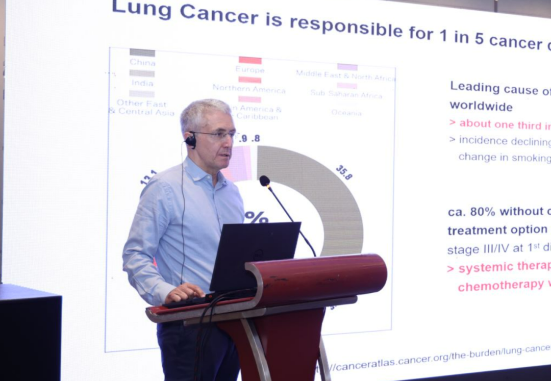 编者按:国际视野,领观前沿。8月5—10日,海外专家中国行项目迎来一位国际肺癌领域的大咖——科隆大学医院综合肿瘤中心(CIO)主任、科隆大学跨学科转化肿瘤学教授、CIO肺癌项目负责人Jürgen Wolf教授。在中国开展了为期5天的学术交流旅程中,Wolf教授的足迹遍及成都、杭州、长沙、青岛四地,吸引了来自我国东南西北地区的肺癌专家参加交流和讨论。在各项学术活动中,Wolf教授不仅分享了德国肺癌诊疗和研究的经验,更与中国专家围绕肺癌诊疗的前沿进展和争议话题,展开学术氛围浓烈的讨论,碰撞出了许多精彩的思维火花。