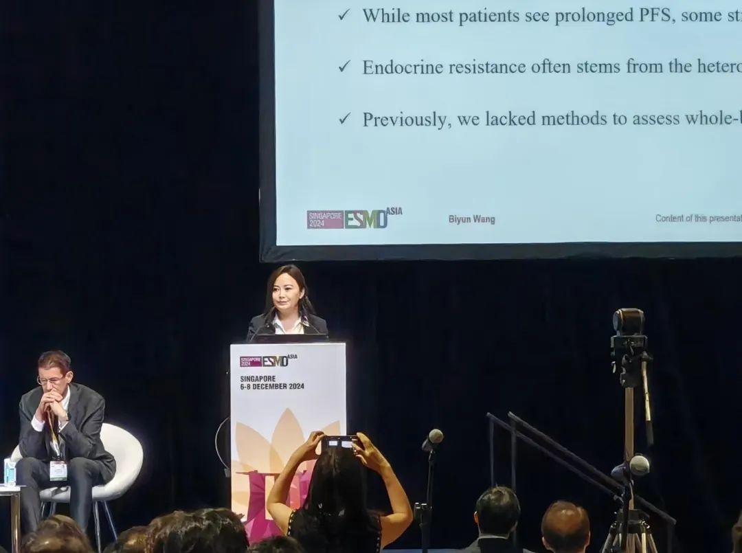 编者按:随着乳腺癌治疗领域的不断进步,精准治疗正逐步成为提升治疗效果的关键。2024年ESMO ASIA大会上,复旦大学附属肿瘤医院王碧芸教授在“Proffered Paper session:Breast cancer”专场带来了优选口头报告,向全世界同道介绍了其团队在18F-FES PET/CT筛查指导HR+/HER2-转移性乳腺癌一线治疗方面的最新研究成果。报告结束后,《肿瘤瞭望》特邀采访了王碧芸教授,请她为我们详细解读了该研究的背景、意义、挑战及创新点,并对未来HR+/HER2-乳腺癌治疗领域的研究方向进行了展望,期待能为广大临床医生及科研人员提供有价值的参考与启示。