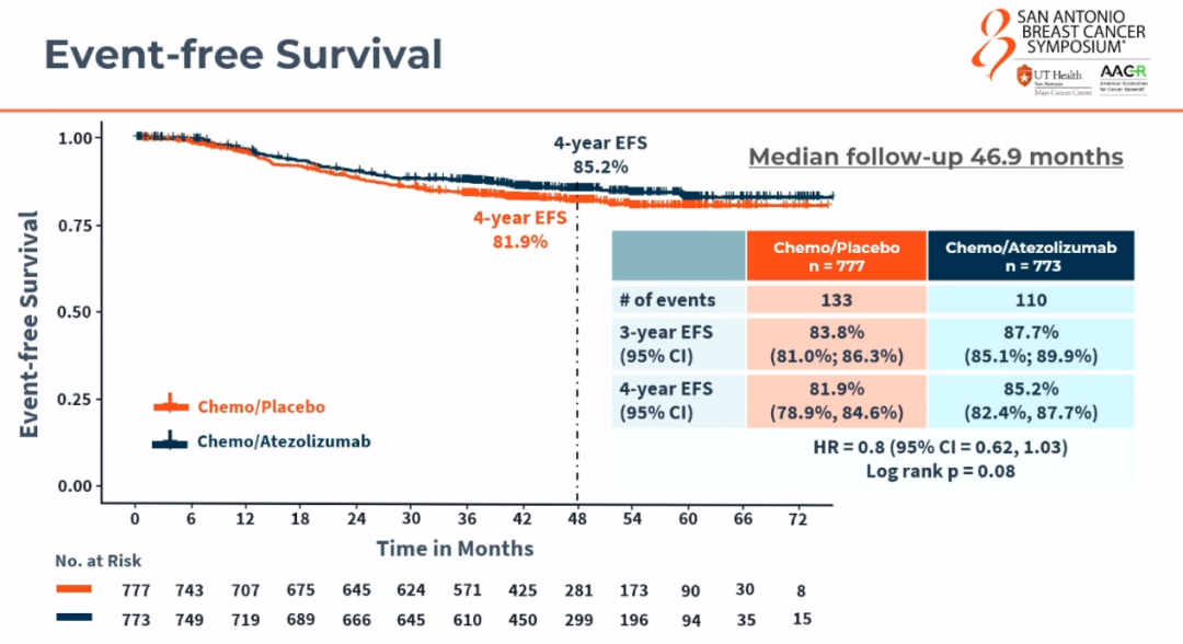 And so half of our non-pCR patients got Capecitabine.So there are differences in the patient populations that came into the study.There’s also differences in the therapy that I think will be of interest,you know,doing the cross trial comparisons.Bottom line to our study was that we did not meet our primary endpoint.We did not show that adding atezolizumab to standard chemotherapy resulted in a statistically significant improvement in event-free survival.So we have to consider our study negative for the goal of showing clear superiority.However,when we look at our subsets,we did see our node-positive patients seem to benefit.