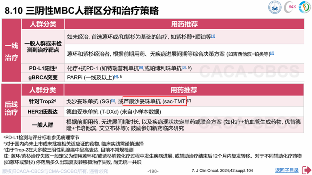 △2025版《CBCS&CSOBO指南与规范-精要版》晚期TNBC治疗推荐