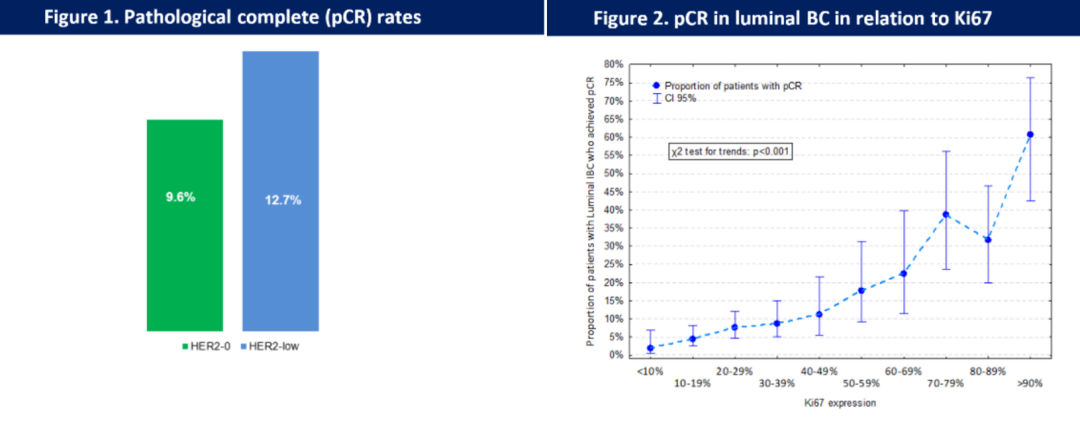 △HER2 0表达和低表达患者的pCR率(左)以及luminal型乳腺癌中Ki-67与pCR的相关性(右)(图源:参考文献[7])
