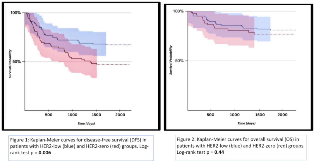△HER2 0表达和低表达患者的DFS(左)和OS(右)(图源:参考文献[8])