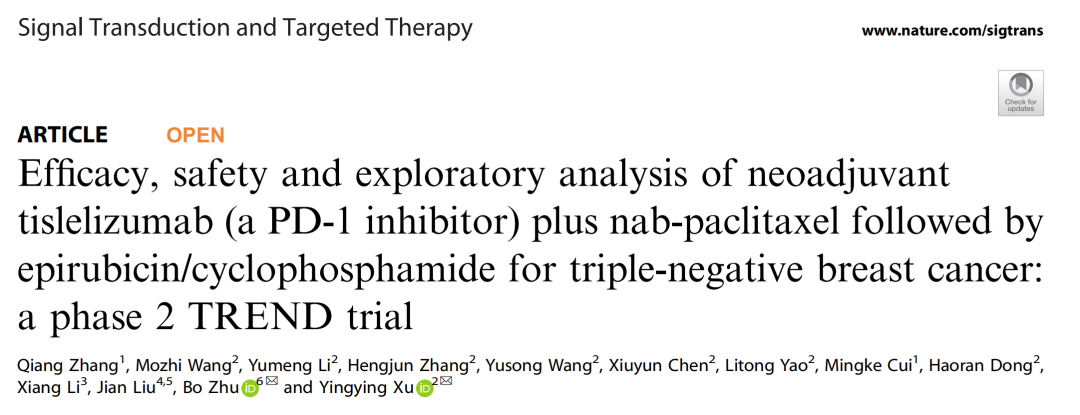 徐莹莹/张强/朱波教授团队TREND成果荣登STTT:新辅助免疫联合无铂、低剂量化疗方案为三阴性乳腺癌提供治疗新策略