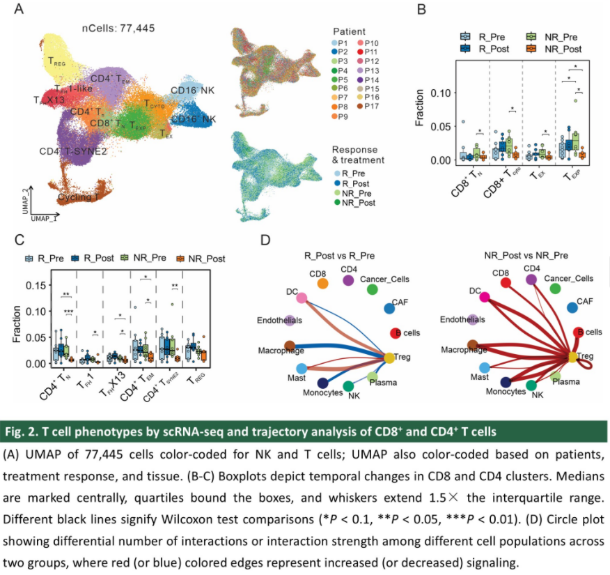 我们收集了参加研究的本中心及福建医科大学附属协和医院的患者治疗前后的肿瘤标本,并进行匹配的单细胞测序(scRNA-seq)和单细胞T细胞受体测序(scTCR-seq)分析。