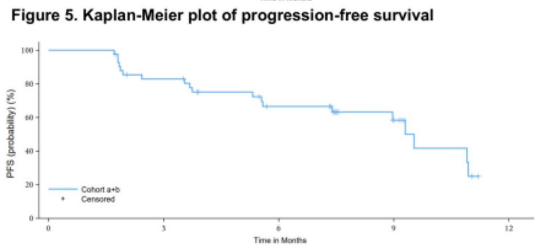 我们在本次ASCO的壁报环节中,进一步报告了针对罕见EGFR突变患者的数据,包括19例ex20ins突变(队列b)和23例非ex20ins突变(队列a:外显子18的G719X、外显子20的S768I、外显子21的L861Q点突变)两个队列。研究结果显示,总体人群的ORR为35.7%,中位PFS为9.5个月。其中,ex20ins突变和非ex20ins突变患者的ORR分别为36.8%和34.8%,中位PFS分别为9.0个月和10.9个月。这些疗效从既往已发表的其他治疗相关研究数据来看,也是非常令人惊艳的。我们期待未来能有更进一步研究探索。