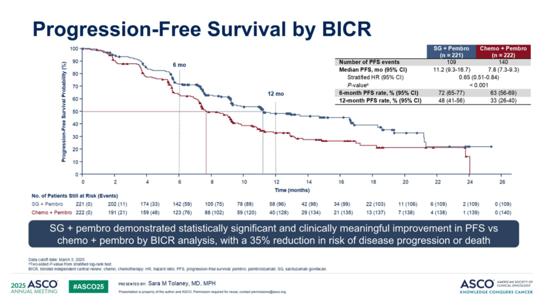 李婷教授:三阴性乳腺癌(TNBC)是当前预后最差的乳腺癌亚型之一。随着诊疗技术的发展,免疫治疗和抗体偶联药物(ADC)为TNBC带来了新的治疗选择。刚刚落幕的2025年ASCO大会公布了多项靶向Trop-2的ADC相关研究进展,包括新辅助治疗和晚期TNBC的数据,这里我们通过ASCENT-04研究与OptiTROP-Breast05研究,重点探讨TROP2 ADC在晚期TNBC患者治疗中的最新进展。