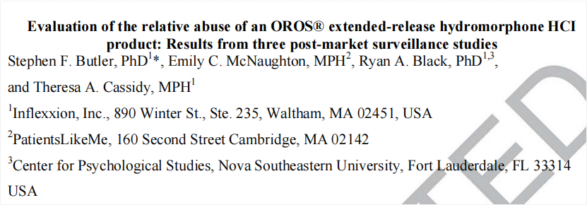 [4]Butler SF,McNaughton EC,Black RA,Cassidy TA.Evaluation of the Relative Abuse of an OROS Extended-release Hydromorphone HCI Product:Results From 3 Postmarket Surveillance Studies.Clin J Pain.2018 Jul;34(7):618-628.doi:10.1097/AJP.0000000000000585.PMID:29298186.