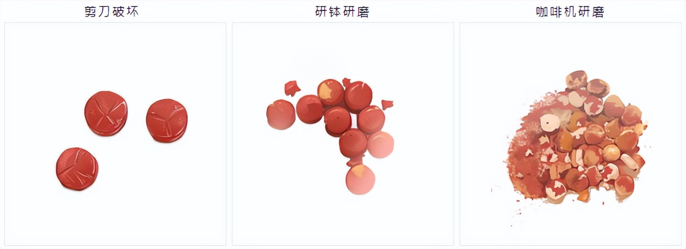 图1盐酸氢吗啡酮缓释片在不同工具下的物理破坏情况