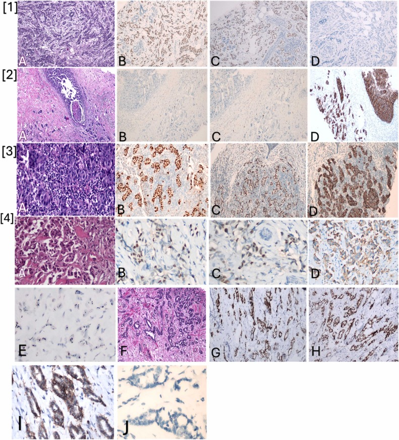 通过回顾患者基线时的放射学检查结果,并将其与化疗后乳房切除术瘤床和淋巴结状态进行比较,评估了患者的初始肿瘤大小和淋巴结状态。ER、PR、HER2和SISH相关数据已根据指南进行审查和报告。ER阳性率为1%-10%的浸润性癌症被报告为ER低阳性。根据IHC观察到的阳性率,PR状态分为两组:1%-20%和超过20%。