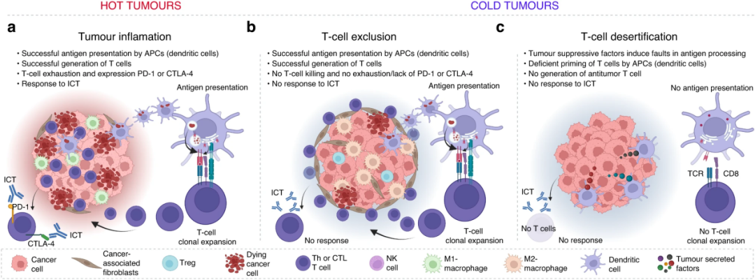 图2.炎性型、排斥型和免疫沙漠型三类免疫微环境的不同特点(图源[4]