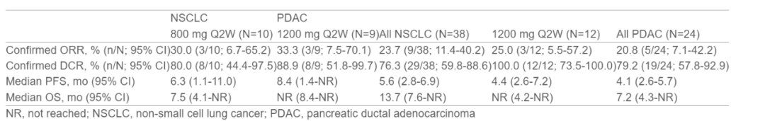 表1.HRS-4642在Q2W给药组中对NSCLC和PDAC的疗效