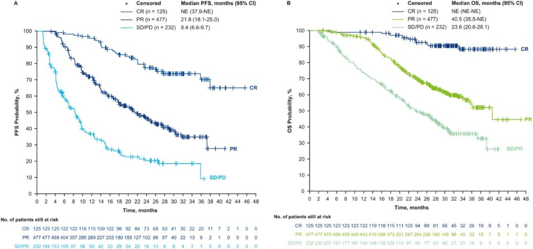 △汇总DB-01/02/03研究,按最佳治疗应答划分的患者PFS和OS数据