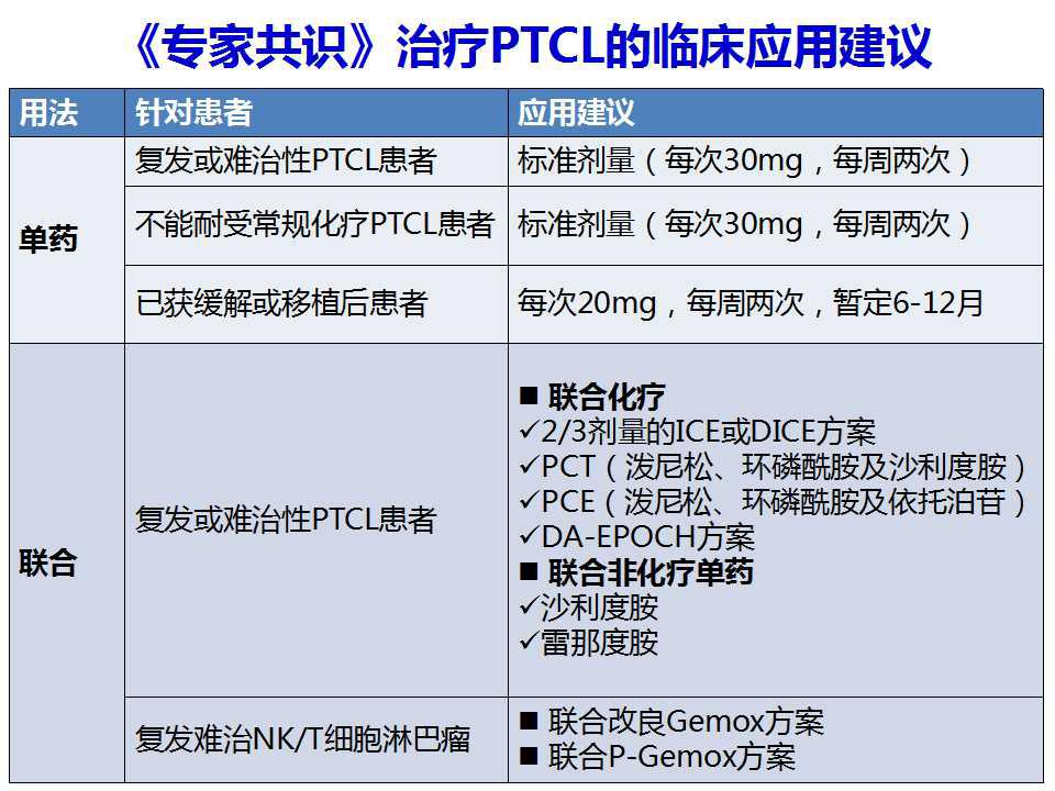 图2. 共识中治疗PTCL的临床应用建议