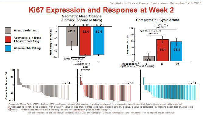 胡夕春教授:是的,张教授讲的非常有道理,今天有一个重要的关于abemaciclib在乳腺癌新辅助治疗中的大会演讲,该研究对激素受体阳性HER2阴性的这部分患者进行了研究。新辅助内分泌治疗的主要研究终点是Ki67而不是pCR。在这个临床试验里,对于激素受体阳性HER2阴性的患者在常规内分泌治疗的基础上加用了CDK4/6抑制剂abemaciclib,显著的降低Ki67水平,得到一个阳性结果。因此,该试验提示,可能对于受激素受体阳性HER2阴性的这个患者群体,将来的发展方向可能是从内分泌治疗转移到内分泌联合CDK4/6抑制剂,这是一个非常有价值的临床试验。