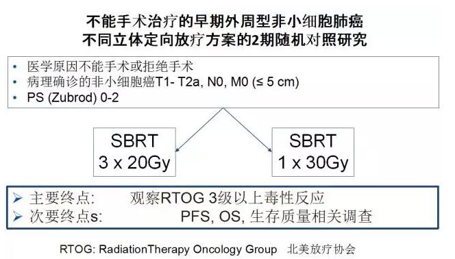不能手术治疗的早期外周型非小细胞肺癌不同立体定向放疗方案的II期随机对照研究