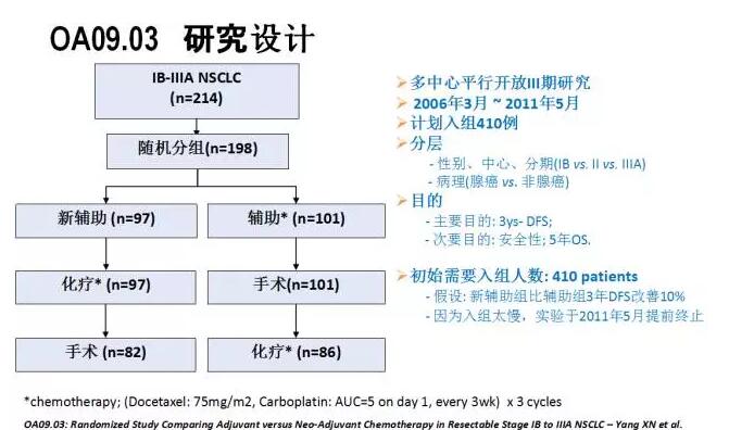 作者的研究结论是:IB-IIIA NSCLC 卡铂+多西他赛的辅助和新辅助化疗是安全可行的;两组的3年DFS和OS无区别;5年OS和DFS辅助化疗有优于新辅助化疗的趋势。