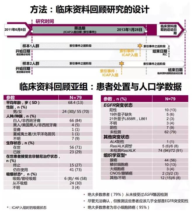 2011年,吉非替尼(易瑞沙)在美国的新药申请项目撤退后,正在接受吉非替尼治疗并且从中获益的患者可以通过IRESSA Clinical Access Program (ICAP)项目继续接受吉非替尼治疗。之后,ICAP项目的研究者回顾性分析了这批患者的用药疗效和安全性数据。