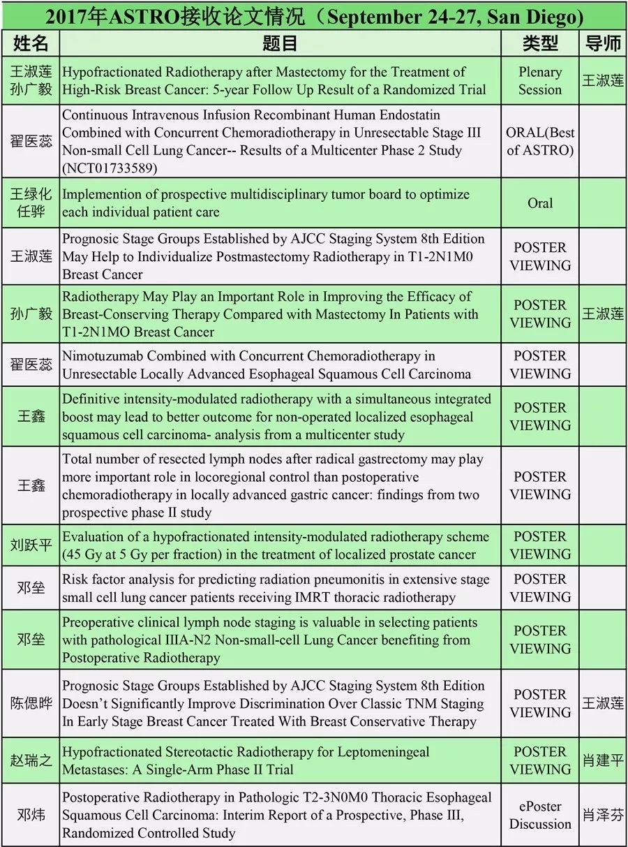2017年ASTRO接收论文情况(September 24-27, San Diego)