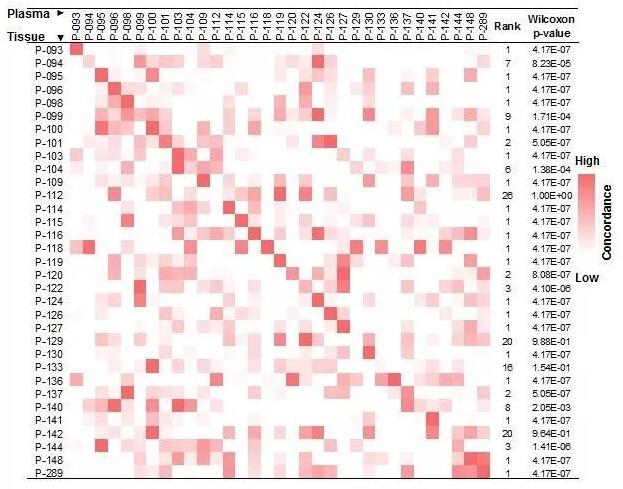 图5. 热图显示组织中的DNA甲基化模式时能够在对应的血浆样本中找到