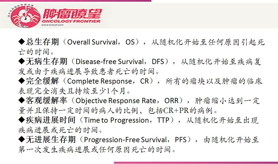 我们在学习笔记第一篇中分享了常用的抗肿瘤药物临床试验终点概念。