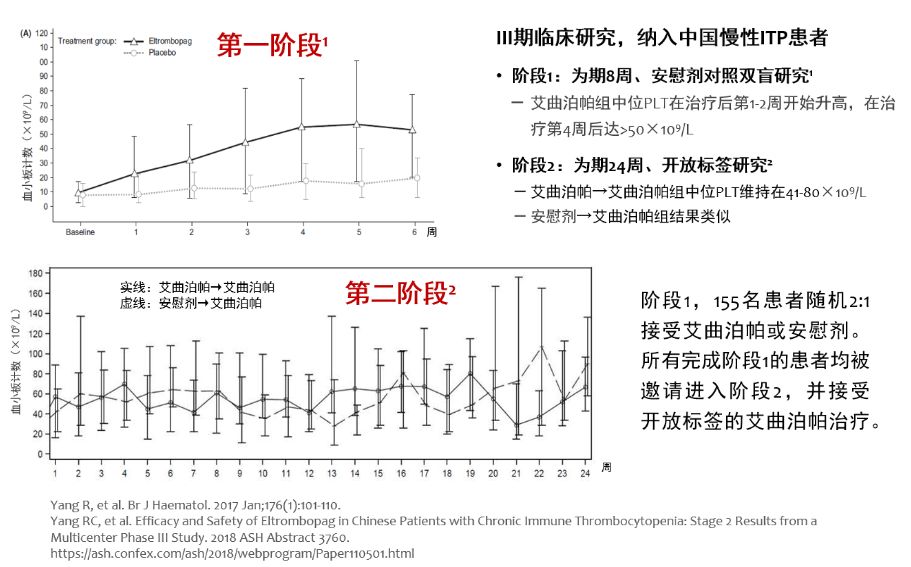 接下来,武汉协和医院梅恒教授盘点了2018 ASH大会ITP诊疗新进展和指南更新。针对艾曲帕泊的中国多中心Ⅲ期研究第1阶段结果显示,艾曲泊帕显著改善血小板水平。而分析第2阶段结果可以发现,艾曲泊帕治疗中国ITP患者实现持续疗效获益,且长期耐受性良好。