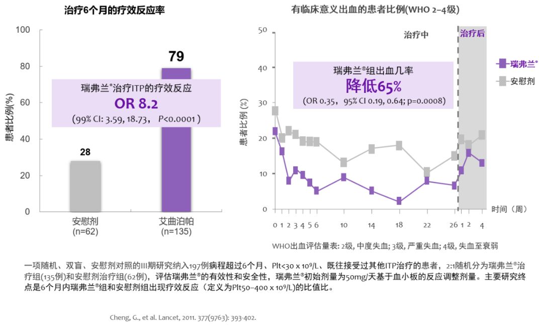 随着近年来对于疾病机制研究得不断深入,新药的出现促进ITP治疗不断改善。TPO受体激动剂的研发改变了治疗模式,我们对于血小板减少的机制的理解也不断加深。考虑到TPO受体激动剂涵盖了血小板减少的全过程,小分子受体激动剂应更早使用,或许可带来长期缓解,避免反复激素治疗带来的不良反应。对于TPO/c-MPL通路敏感的患者,或可尝试将瑞弗兰®治疗地位提前。希望本次大会能协助、促进临床工作者在诊疗一线“瑞”领前沿,锐意进取!