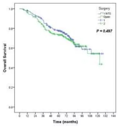 作者得出结论:电视辅助胸腔镜手术的疗效不劣于开胸手术。