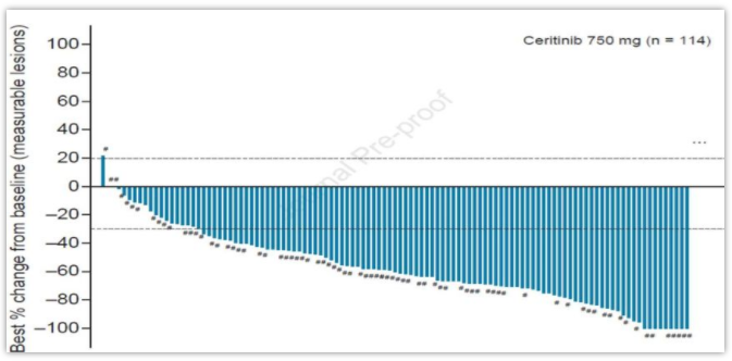 塞瑞替尼是一款针对ALK重排的二代TKI类药物,已经被批准用于这部分患者的一线治疗。