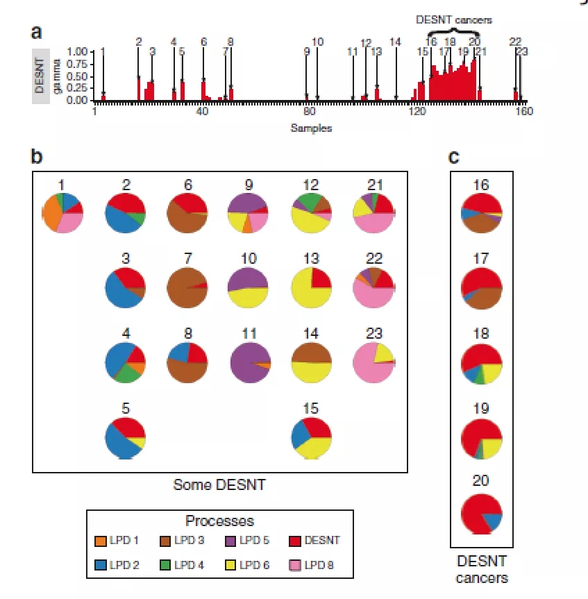 UEA计算科学学院Vincent Moulton教授评论,“通过应用潜在过程分解模型(LPD)分析全球前列腺癌转录数据组发现,DESNT表达的前列腺癌临床预后最差。DESNT高表达的前列腺癌患者发生转移的风险更高。同时,LPD帮助我们对前列腺癌患者进行分层,有助于临床医生针对性的制定治疗方案。这项研究强调了LPD分析基因组数据、构建预测前列腺癌患者预后的新分层框架的重要性”。