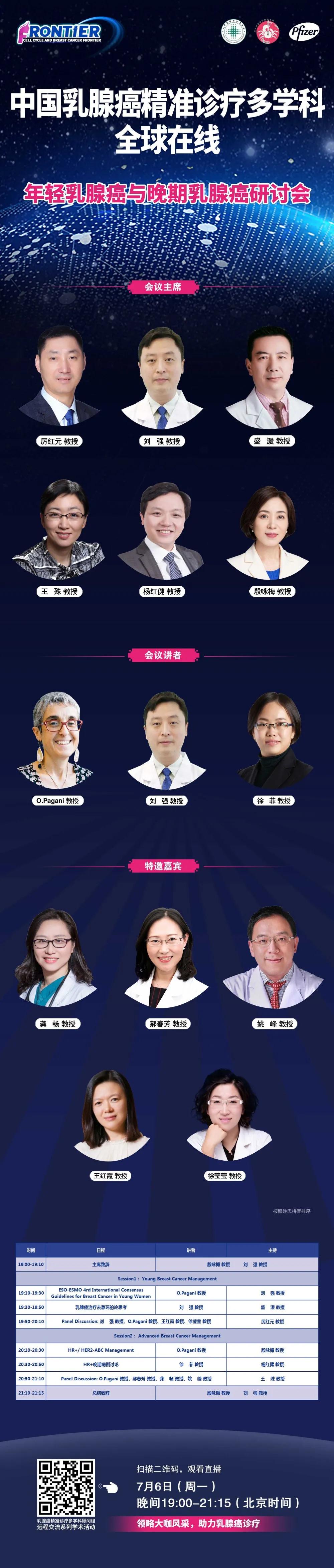 2020年7月6日(北京时间)19:00~21:15,中国乳腺癌精准诊疗多学科全球在线第三期:中瑞连线——年轻乳腺癌与晚期乳腺癌研讨会,与您准时相约。
