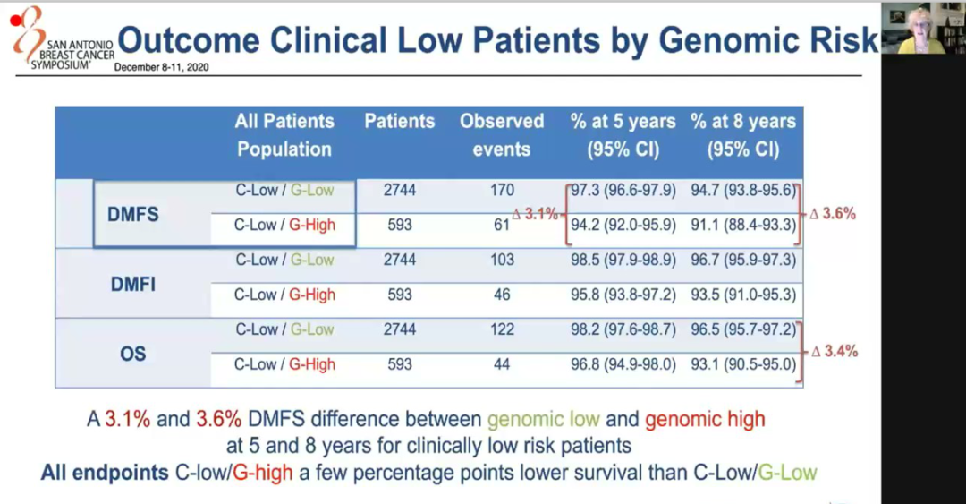 GS4-11. 多低才算低风险:MINDACT临床试验更新了临床低风险患者和按基因组特征、年龄和淋巴结状态分层的患者的结果和治疗获益情况