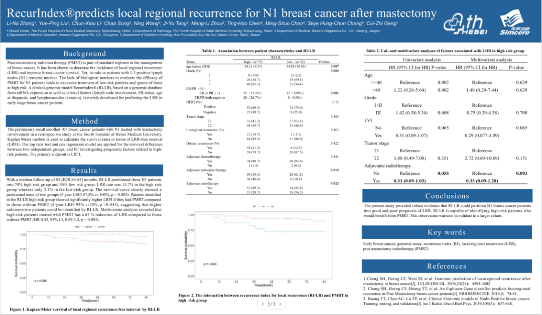 1、验证RecurIndex®?低风险的N1乳腺癌患者是否可以免除术后放疗。