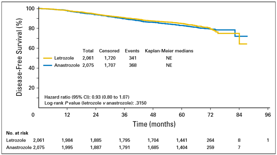 [1] Ian Smith et al.Comparative Efficacy and Safety of Adjuvant Letrozole Versus Anastrozole in Postmenopausal Patients With Hormone Receptor-Positive, Node-Positive Early Breast Cancer: Final Results of the Randomized Phase III Femara Versus Anastrozole Clinical Evaluation (FACE) Trial. J Clin Oncol , 35 (10), 1041-104.