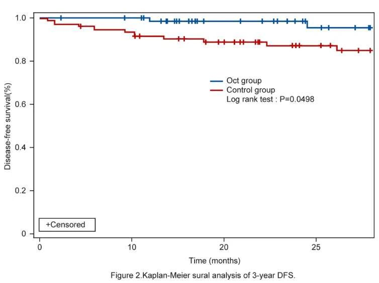 图1. 3年DFS的Kaplan–Meier 生存分析。