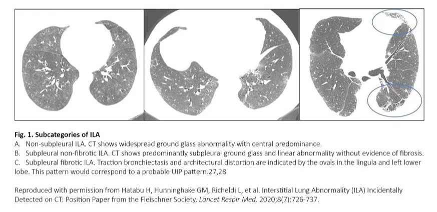 1.Hatabu H, Hunninghake GM, Richeldi L, et al. Interstitial Lung Abnormality (ILA) Incidentally Detected on CT: Position Paper from the Fleischner Society. Lancet Respir Med. 2020;8(7):726-737.