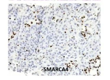 胸部SMARCA-4-缺陷未分化肿瘤是一种高度恶性、未分化的肺肿瘤,有或没有胸壁侵犯。这种类型的肺癌的特点是SMARCA-4表达缺失,可以通过免疫组化(IHC)检测到。SMARCA-4基因参与染色质重塑,其表达缺失主要是突变所致。