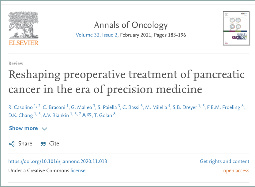 [3] Casolino R , Braconi C , Malleo G , et al. Reshaping preoperative treatment of pancreatic cancer in the era of precision medicine[J]. Annals of Oncology, 2020.
