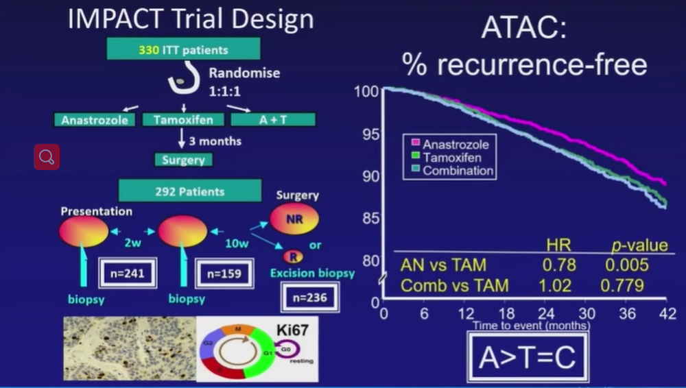 在评价指标上,Ki-67的动态下降确实是疗效预测指标,可能预测患者长期获益,甚至有助于筛选出不需要术后辅助化疗的患者。十分期待能够找到其他更好的疗效预测指标来进一步评价新辅助内分泌治疗的疗效。