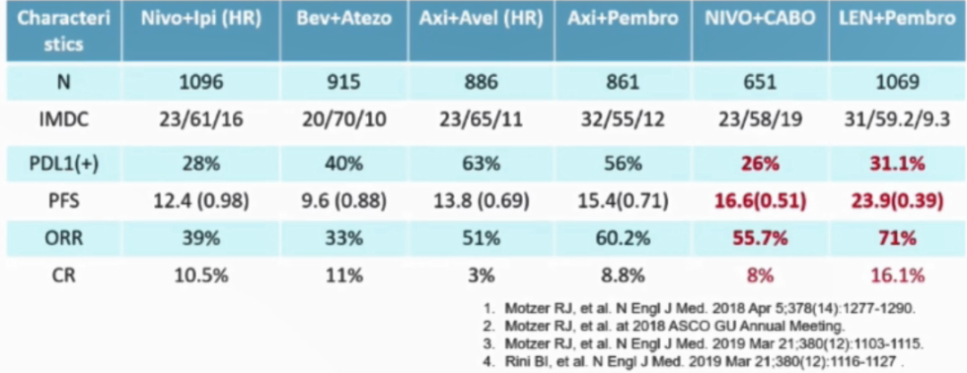免疫联合抗血管生成药物治疗,已成为晚期肾癌一线治疗的主要方案,CSCO-RCC指南早在2019版中就率先推荐这一治疗模式,领先于同期NCCN指南。自2017年以来,晚期肾癌免疫联合治疗已有6项随机对照临床Ⅲ期研究取得阳性结果,均证实显著优于原有治疗方案的一线疗效,且客观缓解率(ORR)、中位无进展生存期(PFS)等数据有不断进步的趋势。