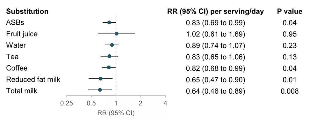 图1. 用其他饮料代替含糖饮料后的早发性结直肠癌风险