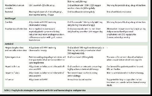 表2、HIV和血液系统恶性肿瘤患者的预防策略
