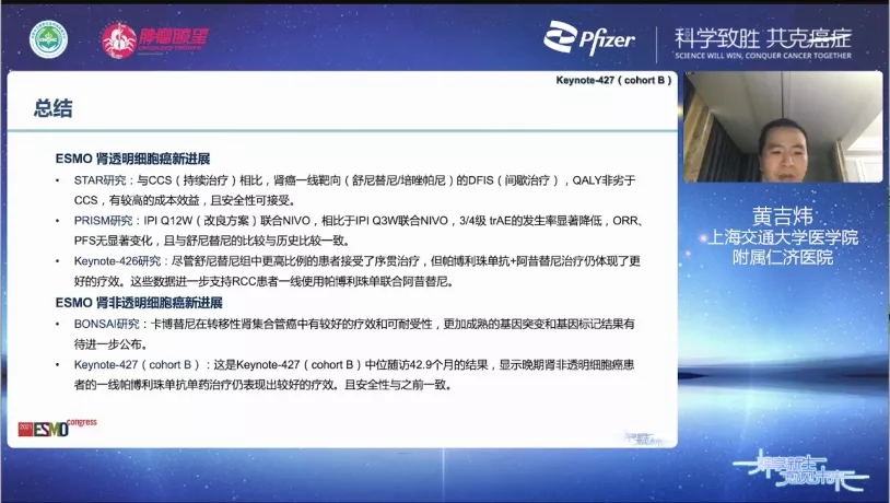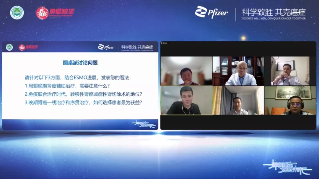 中山大学附属肿瘤医院董培教授、山东省立医院夏庆华教授共同参与了ESMO肾癌进展讨论。