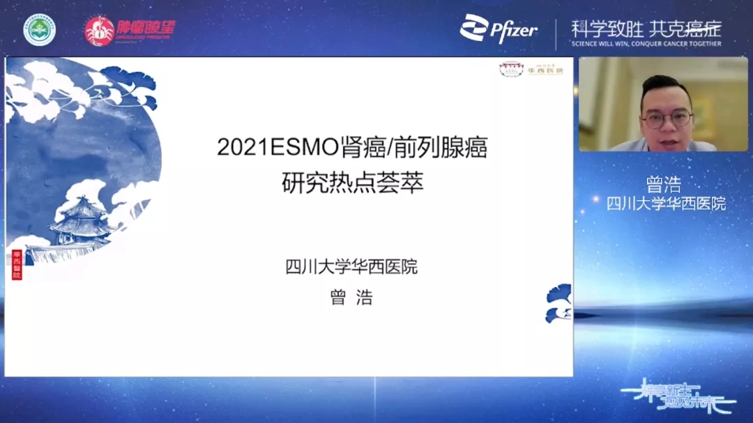 四川大学华西医院曾浩教授分享了“2021ESMO肾癌/前列腺癌研究热点荟萃”。分别从高危肾癌辅助治疗、晚期肾癌靶向治疗、晚期肾癌免疫治疗、非透明细胞肾癌治疗、肾癌治疗联合用药等方面介绍了肾癌研究进展。肾癌研究进展值得注意的是:高危肾癌术后辅助免疫治疗,安全性和疗效兼顾,除了舒尼替尼作为辅助治疗以外,K药的治疗可能成为辅助治疗的选择;STAR研究,舒尼替尼药物的间歇治疗虽然未达到非劣效性研究终点,但考虑费效比和毒性反应等因素,不失为一种临床治疗模式的新选择;临床试验和真实世界数据显示,至少1/3晚期肾癌人群可以从TKI单药1线治疗获益;免疫联合治疗时代,原发灶肿瘤控制率进一步提升,减瘤手术的价值再次成为临床医生讨论的热点。曾浩教授从辅助治疗、mHSPC治疗方面分享了ESMO前列腺癌亮点:新型抗雄药物的强强联合无法进一步提升前列腺癌辅助治疗的临床获益。ARCHES研究的最终报告再次证实了ENZA+ADT联合治疗方案在mHSPC全人群中的临床获益。PEACE-1研究显示了ADT+DOC+ABI的强化联合治疗方案在高风险mHSPC人群中的治疗应用前景。口服LHRH拮抗剂,HERO报告的疗效和注射的地加瑞克疗效数据非常接近,对于抗雄药物或雄激素阻断方面,都能够达到优于LHRH激动剂的效果,因此,对于PSA比较高的患者,或者在辅助治疗或新辅助治疗的患者,都有充足的理由选择使用LHRH拮抗剂治疗。此外,还分享了mCRPC治疗、基因检测与前列腺癌评测等研究进展。复旦大学附属肿瘤医院叶定伟教授进行了点评。