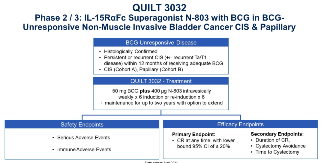 IL-15RαFc超激动剂N-803联合卡介苗治疗卡介苗无反应性CIS和乳头状非肌层浸润性膀胱癌(NMIBC)关键试验的最终临床结果