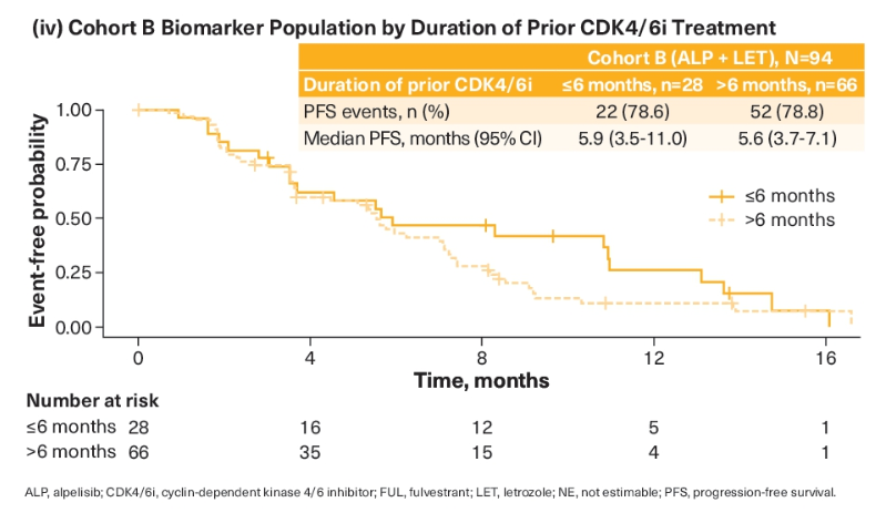 BYLieve研究:根据既往CDK4/6抑制剂治疗的持续时间,对Alpelisib联合内分泌治疗HR阳性/HER2阴性、PIK3CA突变的晚期乳腺癌患者的基线生物标志物和无进展生存期的分析