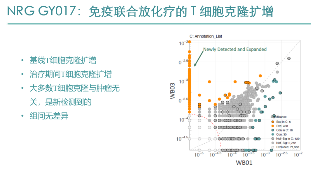 研究结果显示,从基线到治疗第21天,外周血T细胞受体(TCR)和肿瘤相关T细胞的克隆扩增均有显著增加(A组:P=0.0001;B组:P=0.001),两组间无显著差异。治疗前TCR多样性的患者更易达到pCR(P=0.049),两组患者的1年DFS率为72%。安全性方面,A组的16名患者均未出现剂量限制毒性(DLTs),B组14名患者中有3例(8%)发生DLTs。DLTs表现为免疫相关性结肠炎、非免疫相关性结肠炎、血小板减少症伴顺铂治疗延迟超过2周。A组和B组分别有3例和10例患者报告了≥3级治疗相关不良事件,其中只有1例与免疫治疗相关。该研究结果表明,阿替利珠单抗提前和同时联合CRT是安全的,且显示出良好的免疫活性。