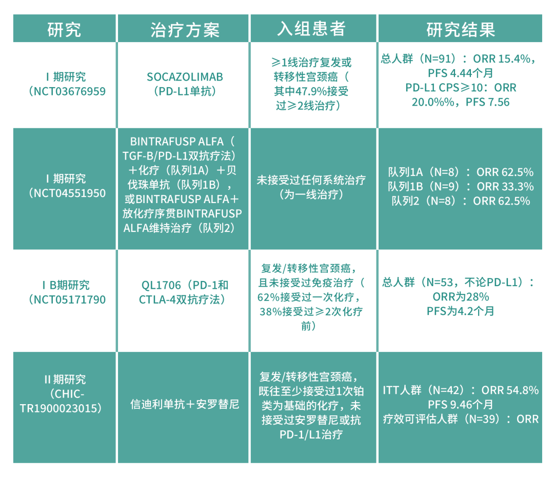 帕博利珠单抗、斯鲁利单抗等PD-1抑制剂联合疗法正在或即将改变晚期宫颈癌一线、二线治疗的临床实践;除此以外,新型TKI、ADC类药物联合免疫治疗,以及PD-1/CTLA-4双特异性抗体、TIGIT抗体等新型免疫疗法的国内外研究也正在探索中,将为晚期宫颈癌患者带来更多治疗希望。