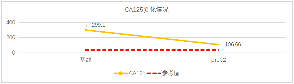 肿瘤标志物(2022-05-18):CEA 38.51ng/ml,胃泌素释放肽8.56ng/ml,CA125 299U/ml。