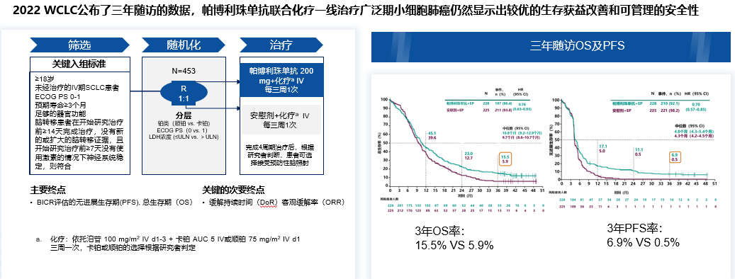 4.Paz-Ares L,Chen Y,Reinmuth N,et al.Durvalumab,with or without tremelimumab,plus platinum-etoposide in first-line treatment of extensive-stage small-cell lung cancer:3-year overall survival update from CASPIAN.ESMO Open.2022;7(2):100408.doi:10.1016/j.esmoop.2022.100408