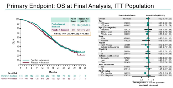 Pembrolizumab plus docetaxel for patients with metastatic castration-resistant prostate cancer(mCRPC):Randomized,double-blind,phase 3 KEYNOTE-921 study.(摘要号:19)